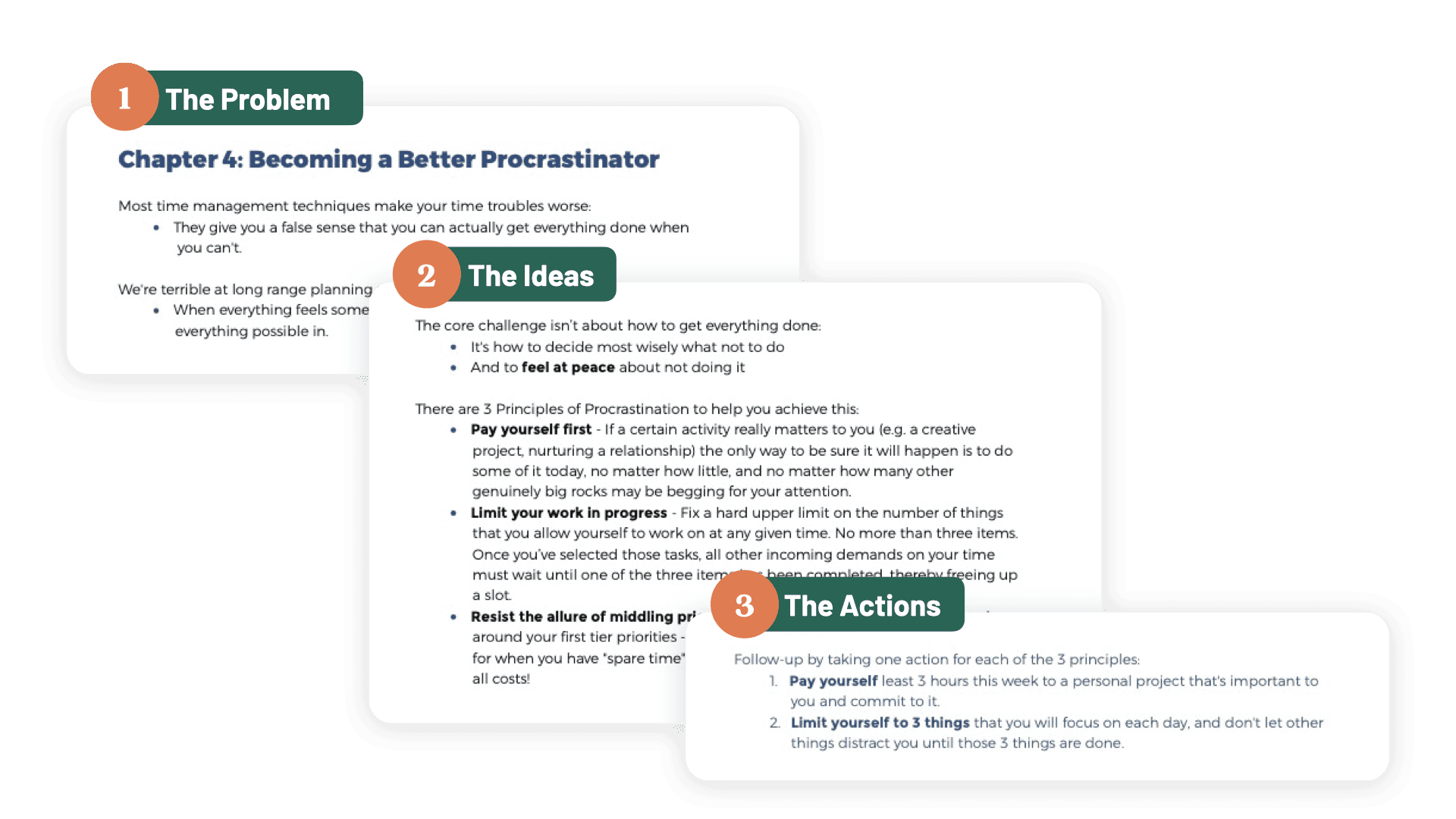 The books we curate are focused on reclaiming and enriching your time / life harmony. Key insights include: