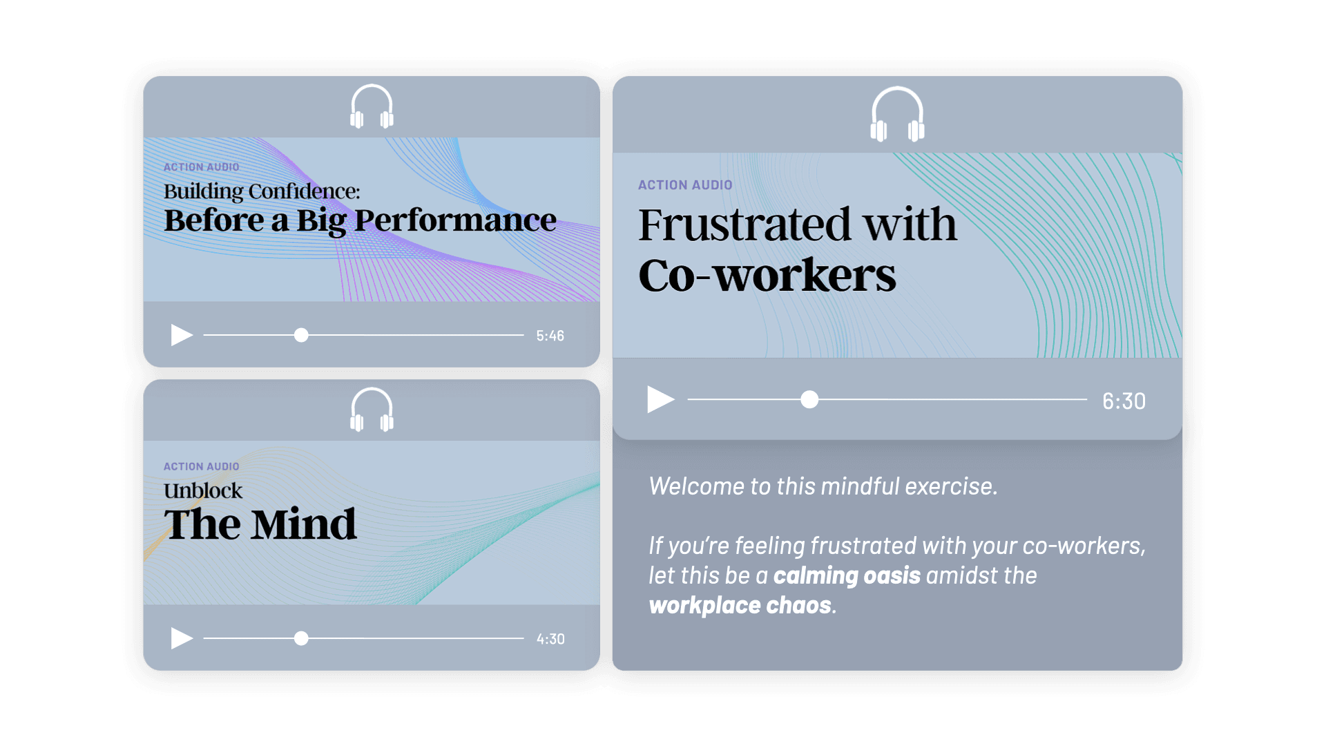 Cultivate your mind to be at your best. We go beyond typical breathing and mindful exercises and provide a toolkit of mindful exercises to overcome mental roadblocks in everyday situations. Tackle big questions that hold you back and discover answers that instantly boost your mental state.