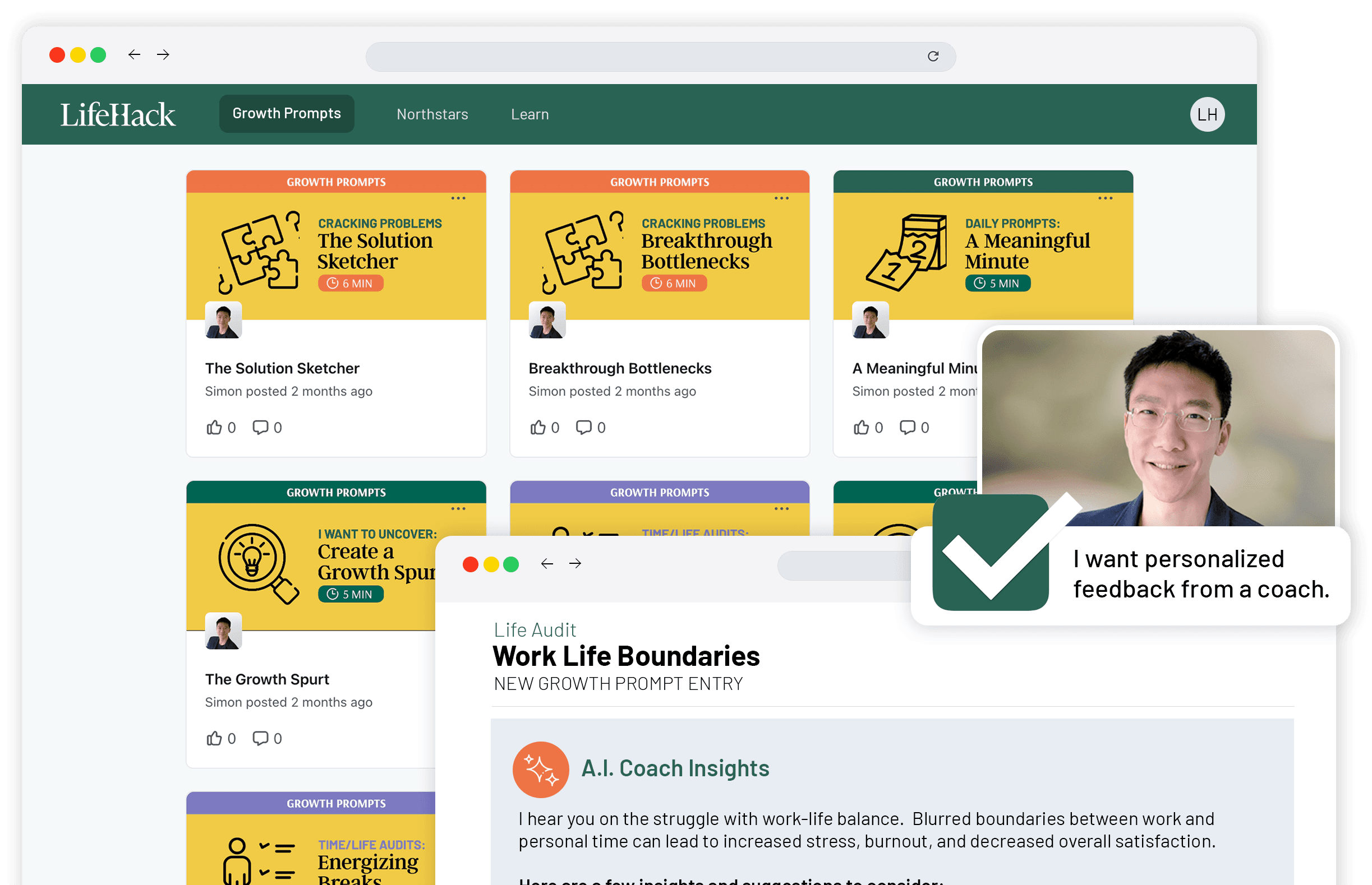 LifeHack's integrated time management framework that transforms your insights into actionable goals, milestones, and focus blocks, helping you achieve meaningful results while fitting seamlessly into your busy schedule.