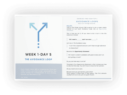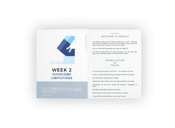 The Make It Happen Program is a full online digital course that you can access through your LifeHack account right after your order. It's as simple as following the steps inside week by week, doing the exercises and practicing the methods, all at your own pace.