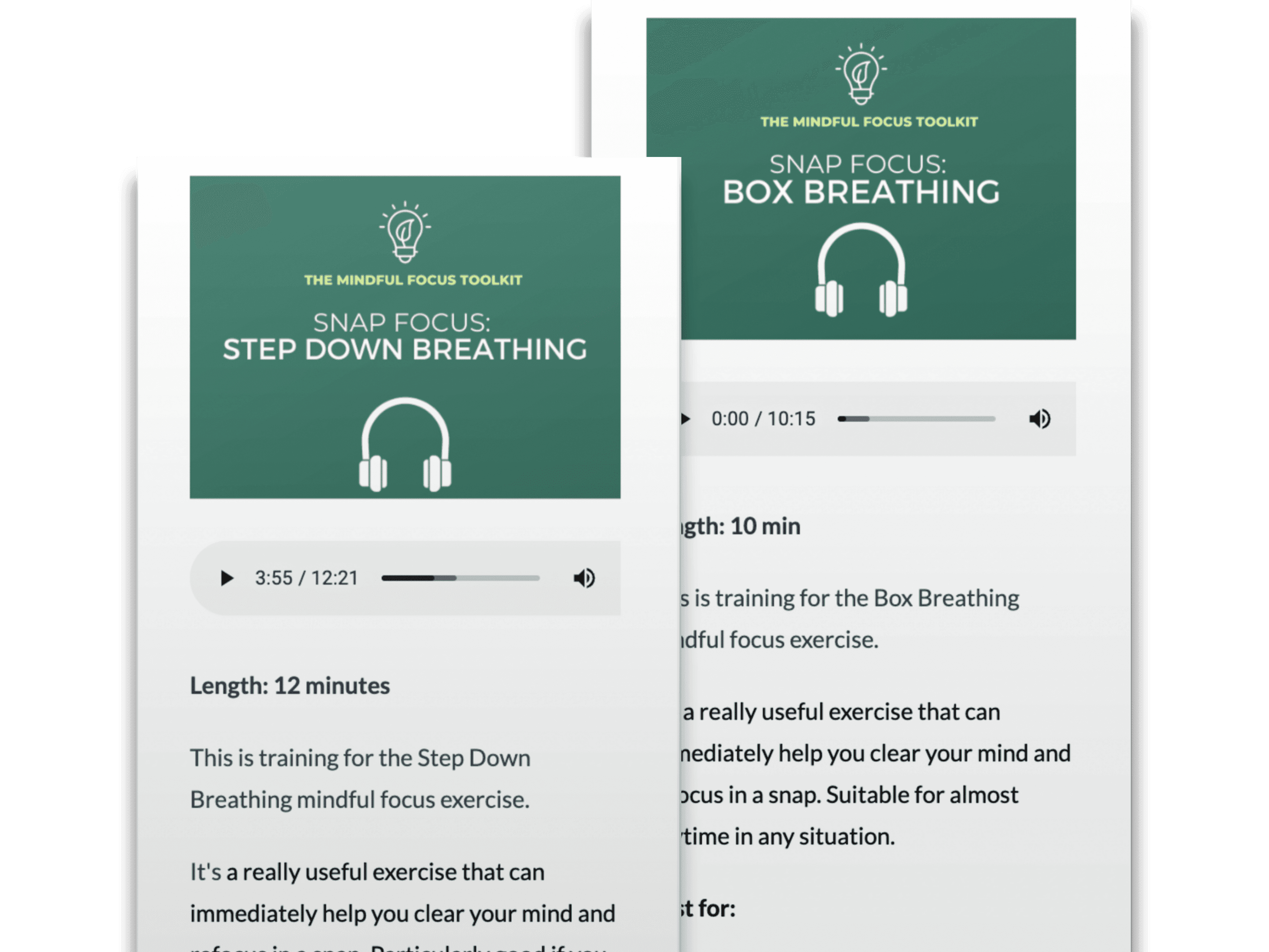 Longer but more focused exercises to achieve a calm and focused state simply by listening and following along.