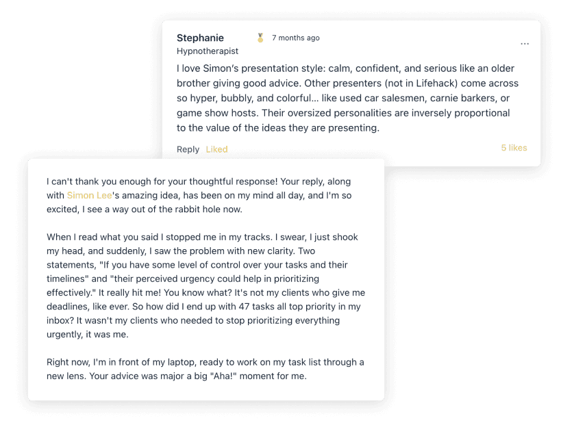 Connect, get guidance, and tailored-for-you personal insights directly from our LifeHack coaches.