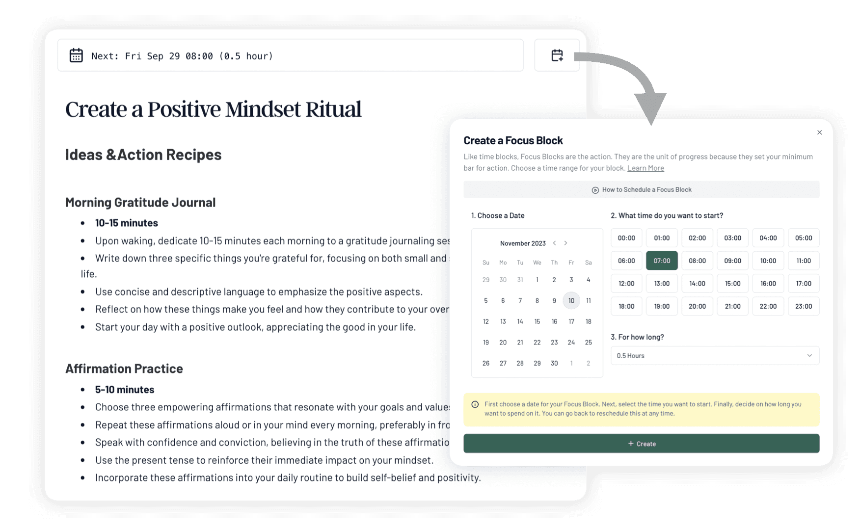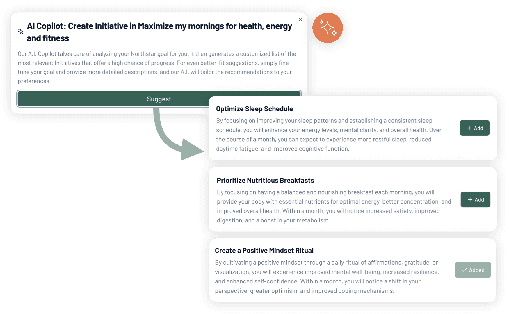 In the Time Flow App, our A.I. Copilot can immediately recommend some for you based on your North Star. Here are some examples that we created: