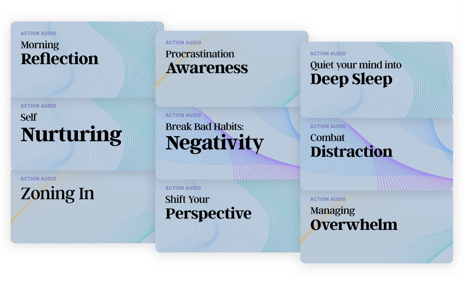 With a large collection of simple but ready-to-go Action Recipes, they can easily fill in unexpected gaps in your schedule, or combined together into longer more in depth sessions. With these filling in your daily routine, you don't need to wait for the weekend for self-care and relaxation.