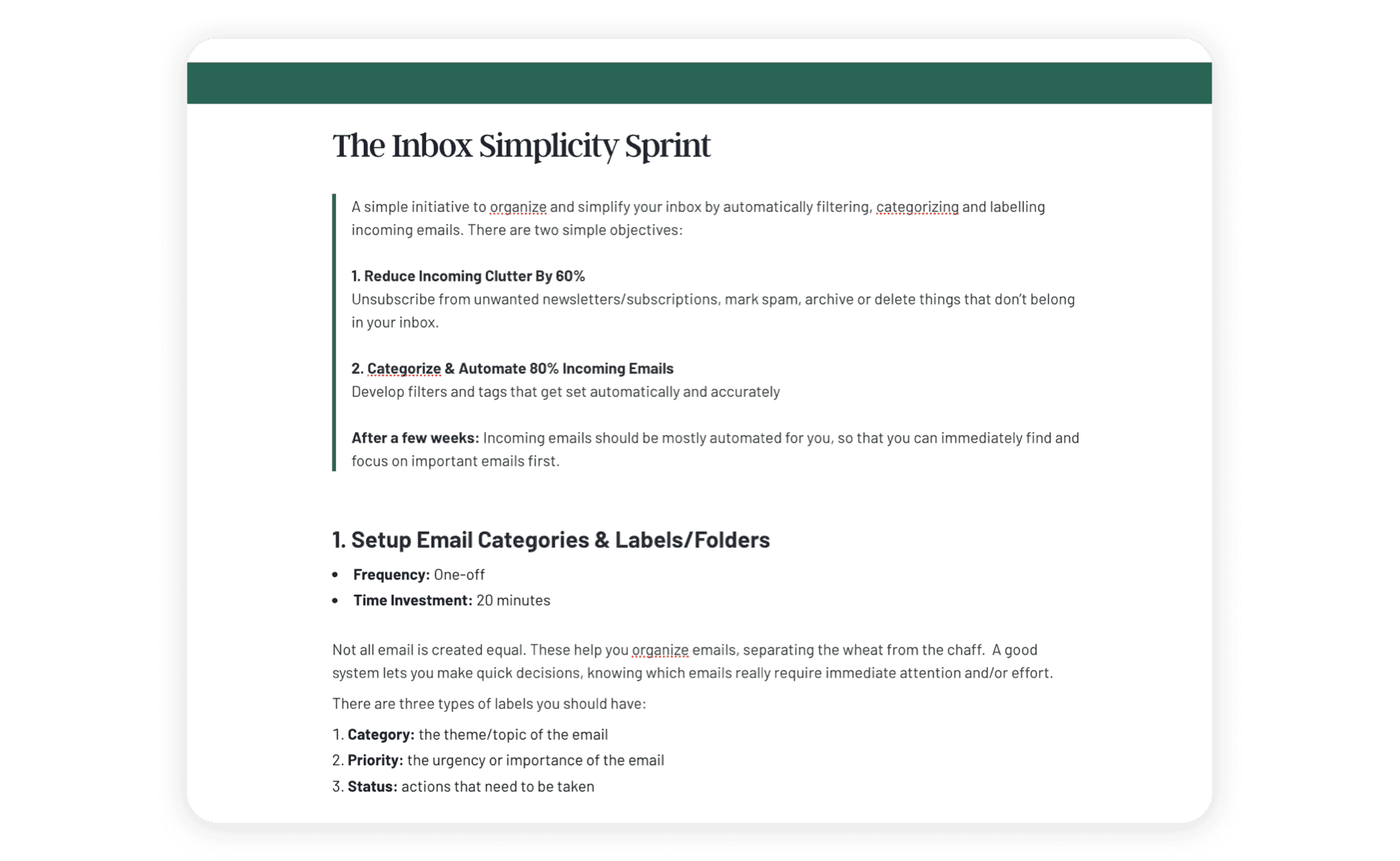 The first Initiative is called the Inbox Simplicity Sprint, with daily actions that's aimed at just one thing: helping you simplify incoming emails so that you can